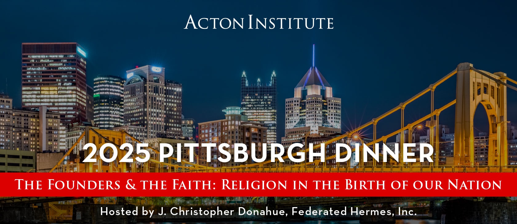 Held at the elegant Duquesne Club, the evening will be hosted by J. Christopher Donahue, President and CEO of Federated Hermes, and promises rich insights into the religious and philosophical roots of the American experiment.