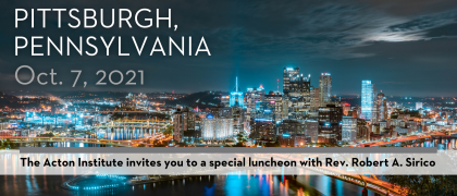 October 7, 2021 5:30pm 2021 Pittsburgh Dinner featuring Rev. Robert A. Sirico Please join Rev. Robert A. Sirico, co-founder and president of Acton Institute as well as supporters and friends of Acton on Thursday Read more »