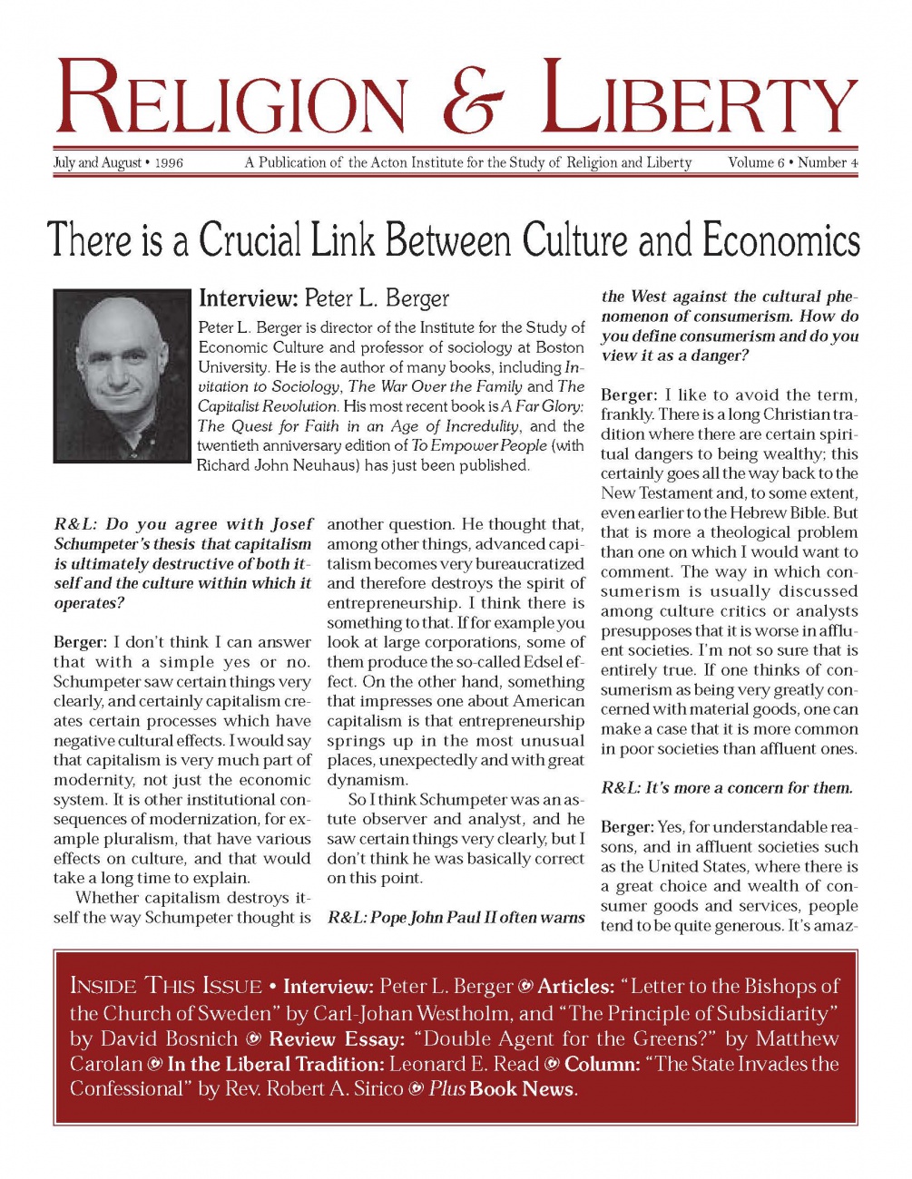 In This Issue Double Agent for the Greens? Leonard E. Read Letter to the Bishops of the Church of Sweden The Principle of Subsidiarity The State Invades the Confessional There is a Crucial Link Between Culture and Economics Get This Issue Download as PDF Recent Issues Fall 2025 Volume 35 Number 4 Summer 2025 Volume 35 Number 3 Spring 2025 Volume 35 Number 2 Winter 2025 Volume 35, Number 1 Fall 2024 Volume 34, Number 4 Summer 2024 Volume 34, Number 3