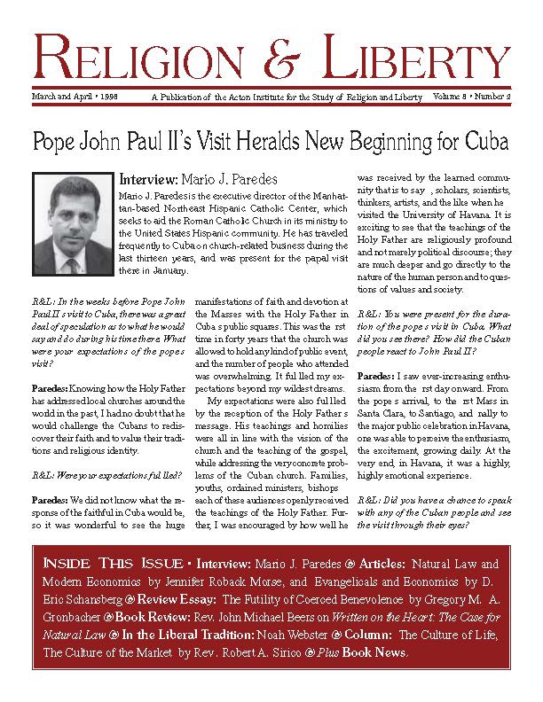 In This Issue Evangelicals and Economics Natural Law and Modern Economics Noah Webster Pope John Paul II's Visit Heralds New Beginning for Cuba The Culture of Life, The Culture of the Market The Futility of Coerced Benevolence Written on the Heart Get This Issue Download as PDF Recent Issues Fall 2025 Volume 35 Number 4 Summer 2025 Volume 35 Number 3 Spring 2025 Volume 35 Number 2 Winter 2025 Volume 35, Number 1 Fall 2024 Volume 34, Number 4 Summer 2024 Volume 34, Number 3