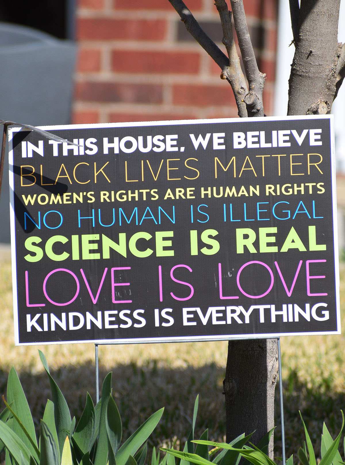 In this house, we believe that science is real, women’s rights are human rights, black lives matter, no human is illegal, love is love, kindness is everything.