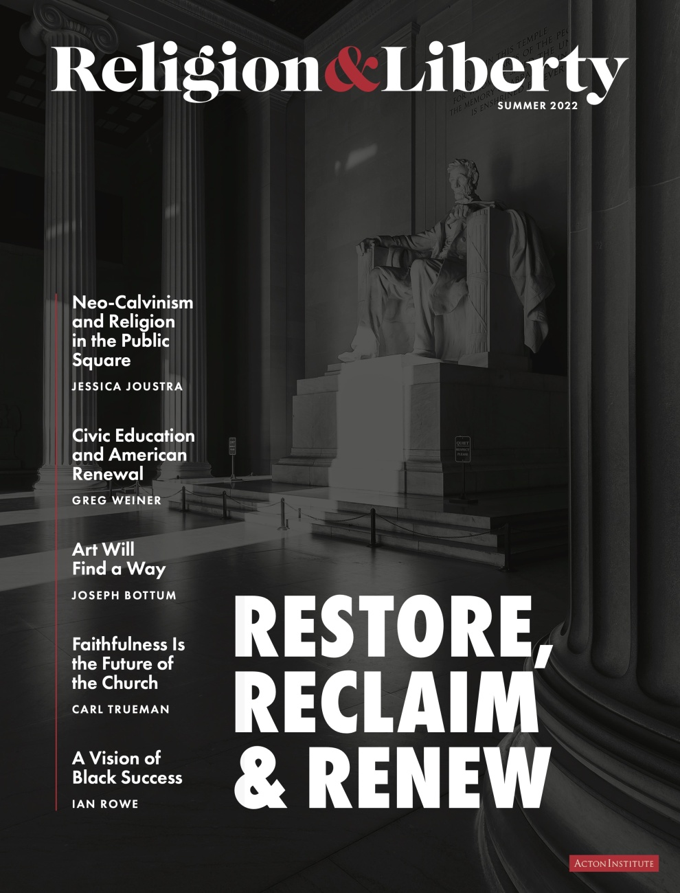 In This Issue A Different Set of Values, a Different Set of Goals A Vision of Black Success Anti-Revolutionaries for the 21st Century Art Will Find a Way Civic Education and American Renewal Education as the Fullness of Life Faithfulness Is the Future of the Church Friends, not Gods In the Liberal Tradition: Linda Whetstone (1942–2021) Restoring the Constitutional Case for Free Trade Revival in Babel’s Shadow Revolution Principles and American Conservatism Now The Abolition of Man Postponed The Art of Debate as the Road to Healing Get This Issue Download as PDF Recent Issues Fall 2025 Volume 35 Number 4 Summer 2025 Volume 35 Number 3 Spring 2025 Volume 35 Number 2 Winter 2025 Volume 35, Number 1 Fall 2024 Volume 34, Number 4 Summer 2024 Volume 34, Number 3